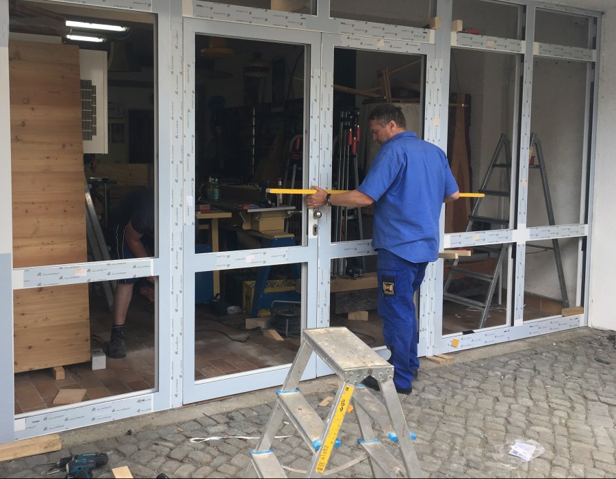 AluminiumTuer Hier entsteht ein neuer Eingang. Es wurde ein Rolltor gegen ein Aluminium-Glas-Bauelement getauscht. Gefällt mir Wird geladen …